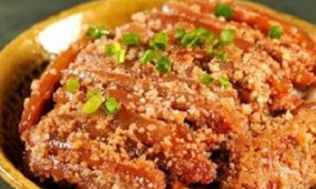 粉蒸肉是廣泛流行於中國江西、重慶、四川、陜南、豫西、安徽、湖北、湖南、浙江、福建、廣東等地的傳統名菜之一。以主料帶皮五花肉加米粉和其他調味料制作而成。粉蒸肉(又名:米粉肉、面面肉),是廣泛流行於中國南方地區的漢族傳統名菜之一。以主料帶皮五花肉加米粉和其他調味料制作而成。粉蒸肉糯而清香,酥而爽口,有肥有瘦,紅白相間,嫩而不糜,米粉油潤,五香味濃鬱。根據烹飪方法,可以偏辣,也可以偏甜,配料可以輔以老藕、南瓜、紅薯、土豆等配菜。粉蒸肉做法多樣,但還是傳統做法味道最好,糯而清香,酥而爽口。