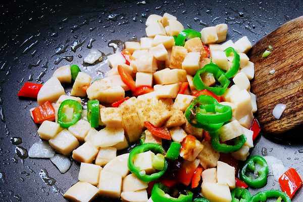 ??青紅辣椒是作為配菜,早一點下鍋沒關係,因為整道菜烹炒時間比較短。