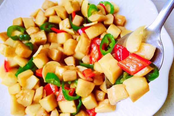 ??杏鮑菇前面焯水已經熟得差不多了,後面稍稍炒一下就可以。