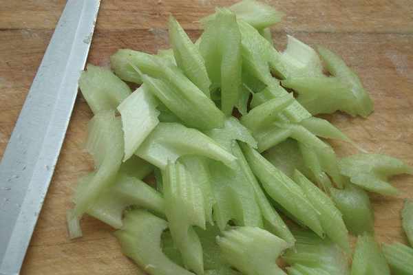 所需食材:西芹少許、鮮百合半顆、雞精半勺、食鹽少許、植物油半勺