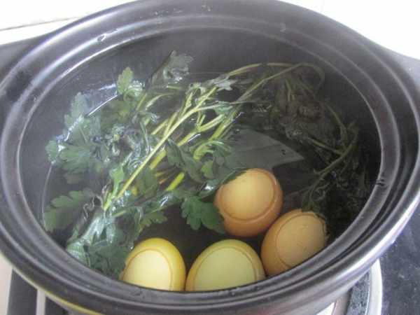 把艾蒿和雞蛋放入砂鍋,加上少許鹽煮熟浸泡,這樣就可以吃了,很簡單的。