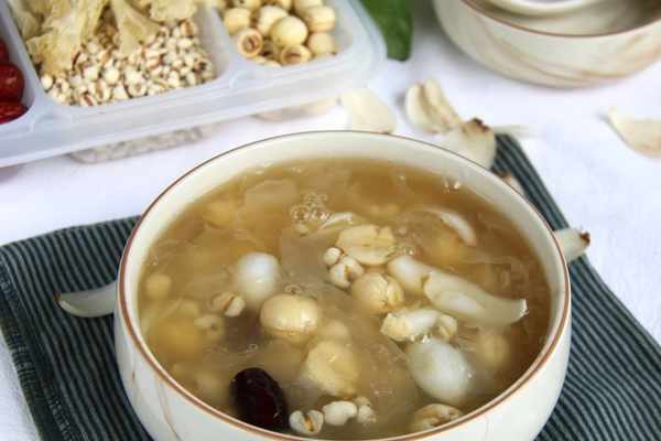 下麵分享詳細做法;需要的食材;銀耳10克、蓮子30克、薏米30克、鮮百合200克、紅棗30克。
