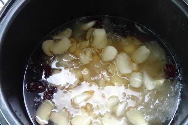2.鮮百合最容易煮熟了,所以要等最後加入這樣口感最好,也不會軟爛。喜歡吃甜味要加冰糖的可以和鮮百合一起加入。