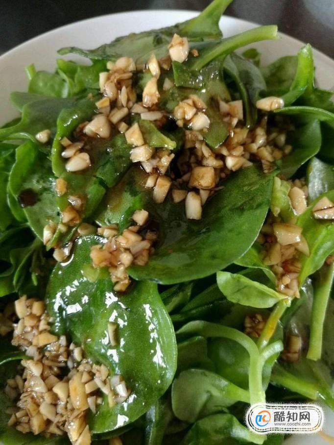 然后把煮熟的三七叶放在盘子里面,依次倒入蒜末、生抽、盐、蚝油、香油等,这样子凉拌鲜三七叶就做好了。