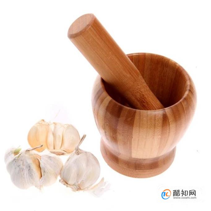 接下来就是剥蒜,黄瓜和蒜搭配简直是人间美味,然后将蒜用蒜臼子捣碎做成蒜泥。在捣蒜的时候,加点盐蒜味会更鲜美!