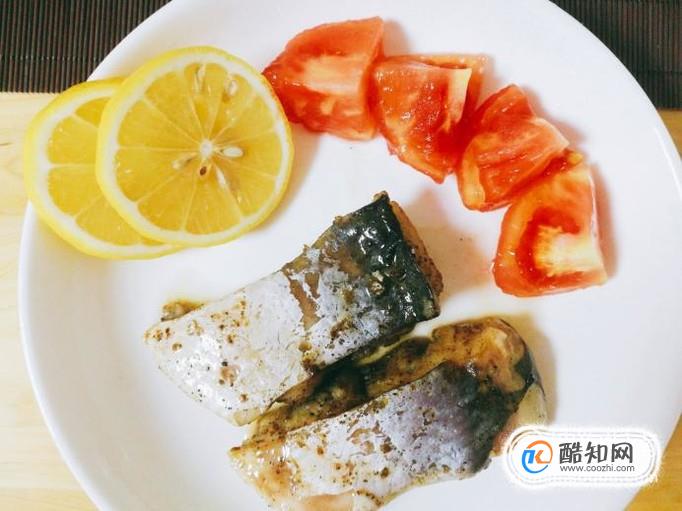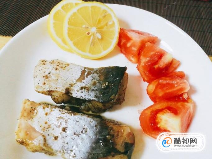 将巴沙鱼块放入盘中,切一个小番茄,再加两片柠檬就摆盘成功啦!