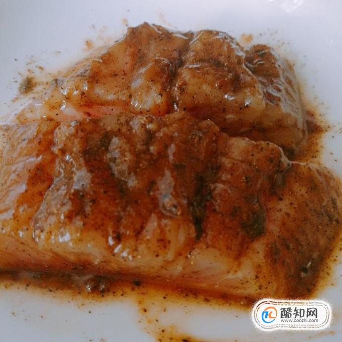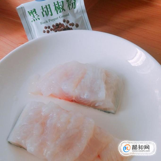 将撒有食盐、黑胡椒的巴沙鱼在盘子中腌制5-10分钟。