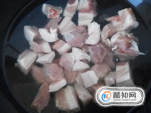 首先用的需要把五花肉用清水清洗干净,然后把五花肉切成小块,然后下入到冷水锅里面煮开了去除浮沫,我们可以加入姜片或者料酒去腥。