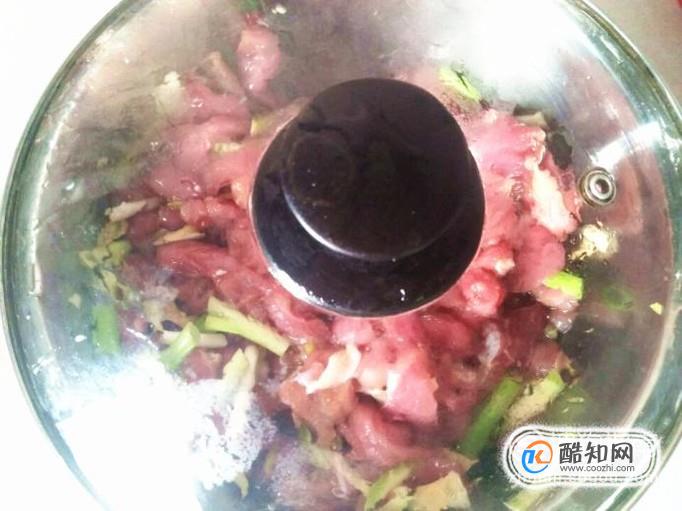 准备葱姜蒜,小葱切成大段,生姜成妾丝,大蒜直接用刀拍碎就可以,全部放进猪肉里。