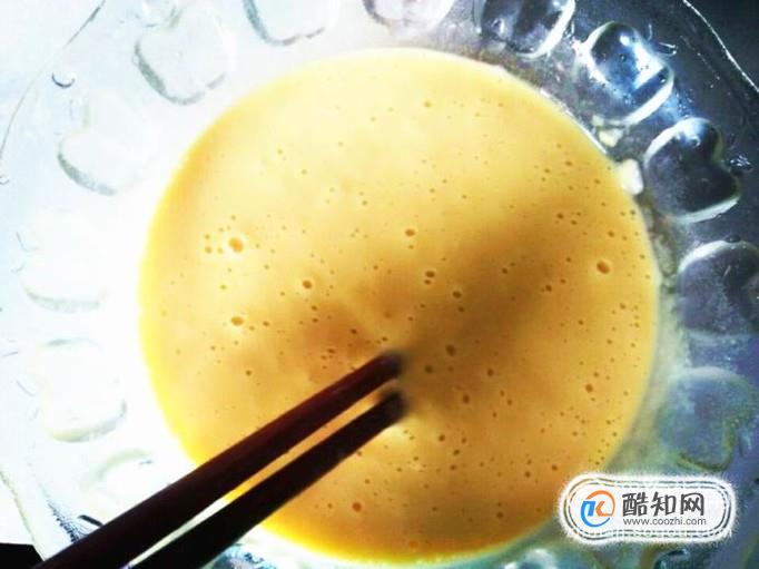 再加上一点清水,然后用筷子将鸡蛋打散,并且搅拌的没有一点颗粒,调成鸡蛋糊待用。