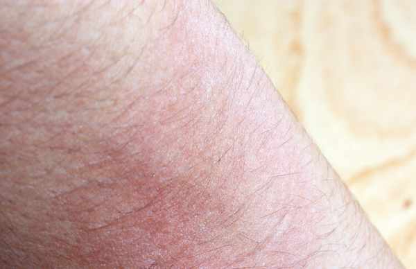 症狀:皮膚長紅疹,出現瘙癢、乾燥和脫皮現象,多呈對稱性分佈,會反復發作,嚴重時還會滲出透明液體,皮膚腫脹較為明顯,但邊界不清。