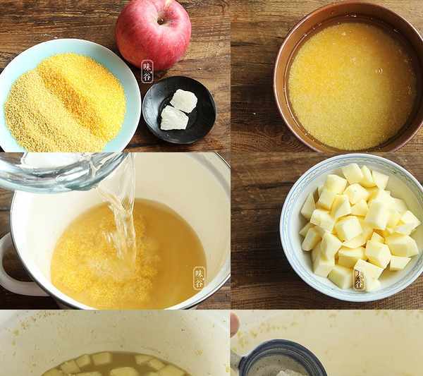 資料:玉米渣半碗、小米半碗、蘋果1個、冰糖適量
