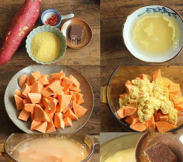資料:紅薯150克,小米100克,紅糖1塊,枸杞少許