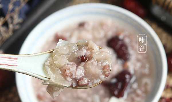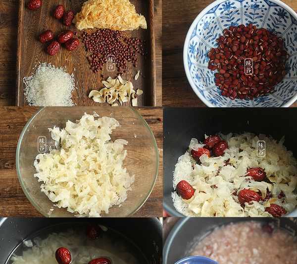 資料:大米60克、銀耳15克、紅豆25克、紅棗6枚、百合10克