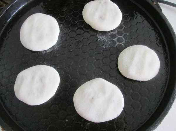 2,電餅鐺烙餅很簡單,如果沒有電餅鐺可以用平底鍋來代替,小火慢烙即可。