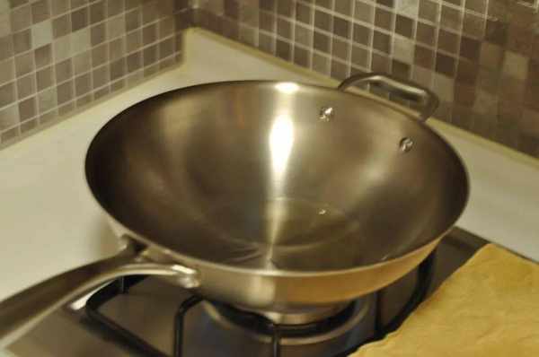 7. 鍋中放少許炒菜油,一定要少放,因為煸五花肉很出油。