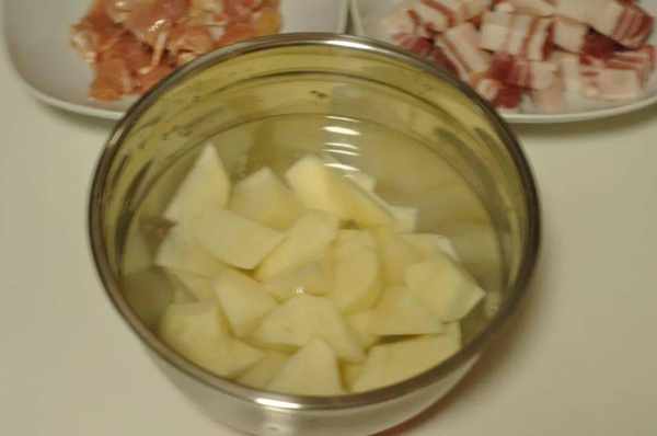 5. 洋芋切塊並放在水裏,防止氧化變黑。