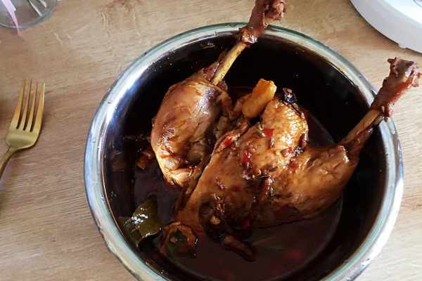 ⑤中間開鍋翻炒一下鴨腿,蓋上鍋蓋,繼續小火慢燉30分鐘左右,關火燜10分鐘左右再食用最合適。