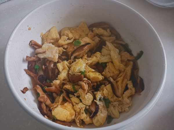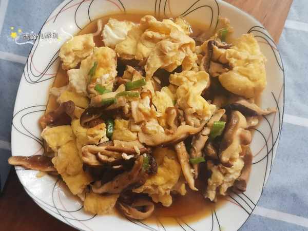 第七步:這時香菇已經超軟,倒入炒好的雞蛋。
