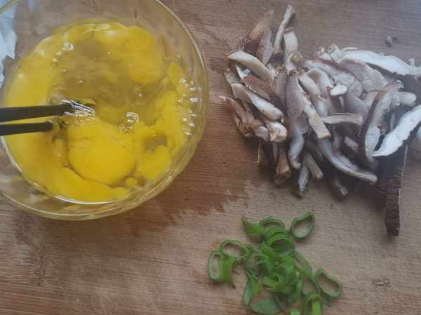 第二步:把雞蛋打到碗裏攪散成蛋液,小葱切碎,香菇切絲。雞蛋是我們生活中必備的不可缺少的一種重要的食材。雞蛋含有豐富的蛋白質,而雞蛋中的蛋黃還含有卵磷脂及礦物質,都是我們身體必須的。雞蛋裡面不僅含有豐富的蛋白質,也有能開發智力的膽鹼物質,對於處在發育階段的青少年來說,雞蛋的補給非常關鍵。當然雞蛋的好處多多,做法就更加的簡單。