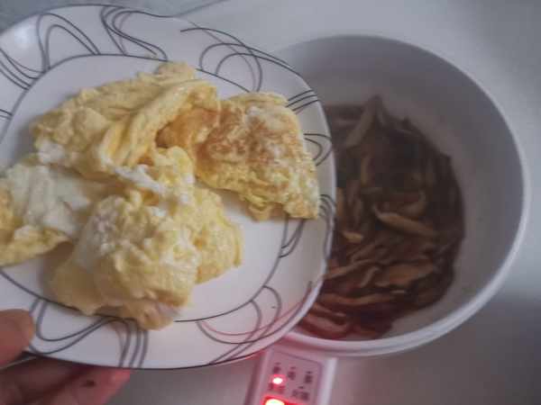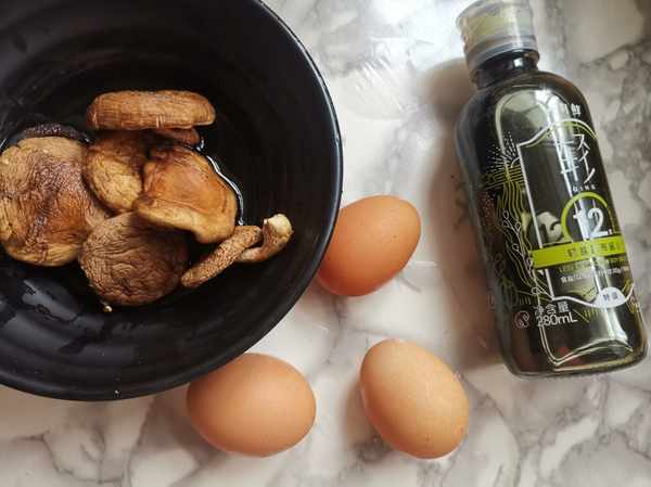 所用食材:雞蛋3個,香菇適量,六月鮮輕鹽醬油少許,葱末,花生油1小勺。