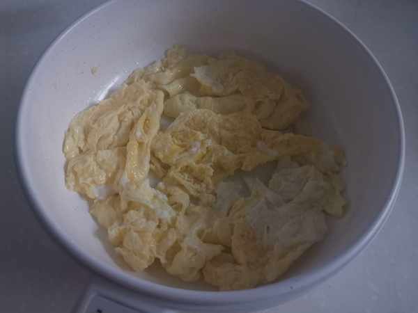 第四步:蛋液炒成雞蛋塊,倒出備用。