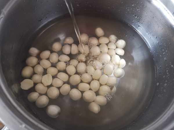第六步:把鍋裏放入浸泡好的少許桃膠,以便新增湯羹的濃稠度,再倒入蓮子。
