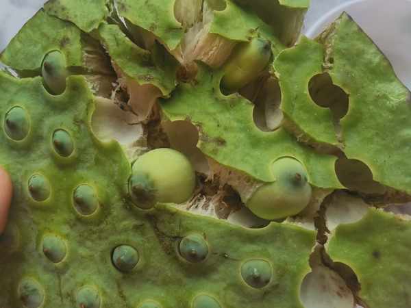 第二步:新鮮蓮子的營養比干蓮子更好,蓮子還是富"鉀"食材,在流汗的季節,多吃富鉀食材對於身體好處很多,讓疲勞一掃而光。新鮮的蓮子味略微帶苦味,又帶一點甘甜味,對於心火旺盛的人來可以有效的降心火、清心安神,利於睡眠,而新鮮蓮子中含有的生物鹼,對於降壓還有好處呢,所以說新鮮蓮子非常適合高血壓以及睡眠不好的人吃。我們要吃新鮮蓮子,那麼就要先把蓮子從蓮蓬中剝出。