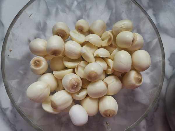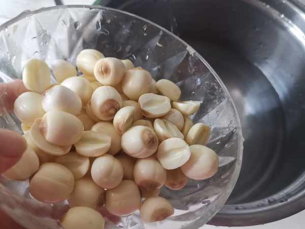 第五步:蓮子多放一些去除蓮子芯的蓮子,再放一些帶著蓮子芯的蓮子,這樣煮出來不會因為蓮子芯發苦影響口感,還可以快速降火。