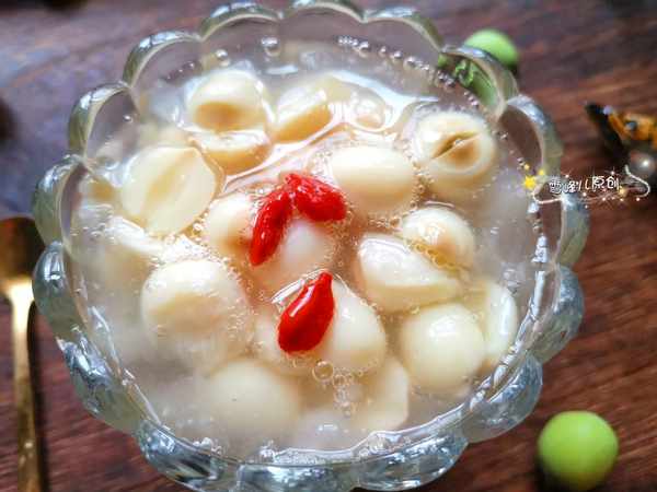 所用食材:新鮮蓮子1碗,桃膠少許,枸杞少許,蜂蜜適量。