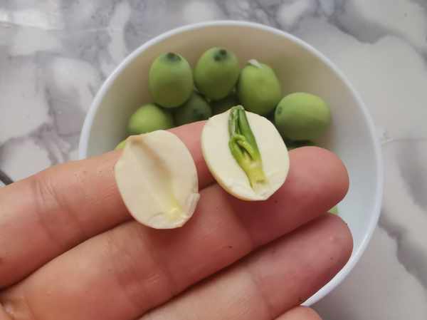 第四步:這樣就可以看到蓮子是兩半的,捏開之後,就可以看到裡面的蓮子芯,蓮子芯可以很好的緩解生活的壓力,快速去火,所以我們也別把蓮子芯丟掉。