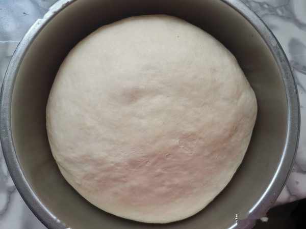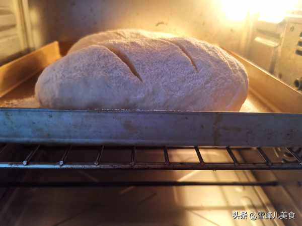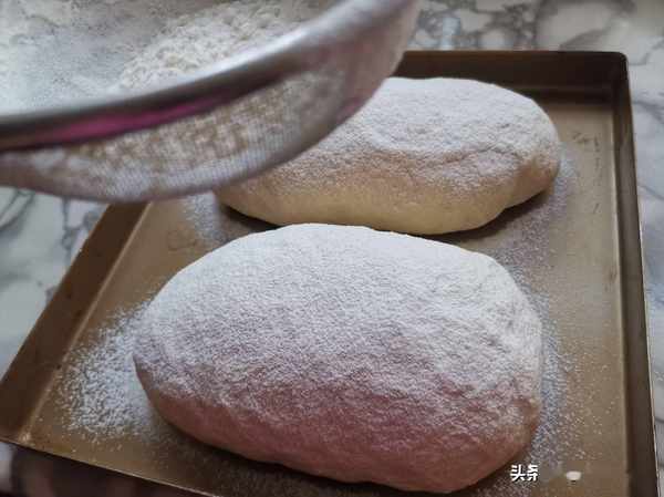 第五步:發酵好的麵包坯子,篩上薄薄的一層幹麵粉。