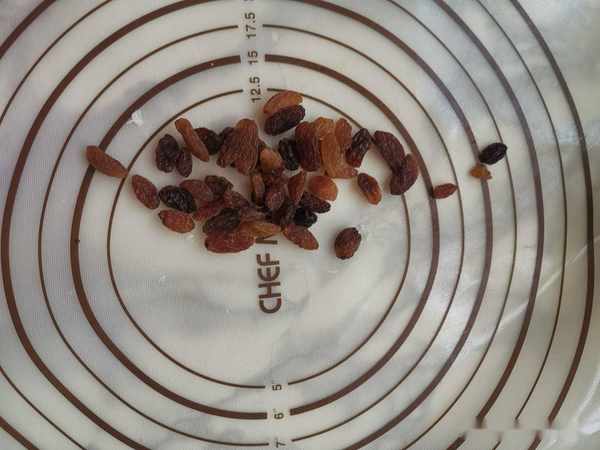 第二步:拿少許的黑葡萄乾洗淨擦乾,這款黑葡萄乾其實叫做黑提子幹,味道和普通的葡萄乾差不多,沒有就用葡萄乾代替就可以。