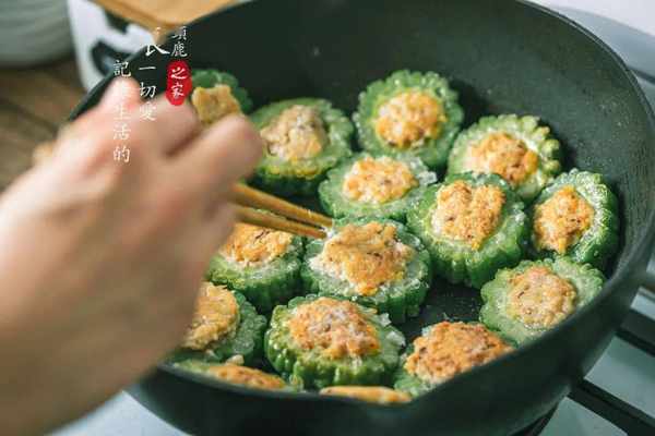 說到解暑,不可不提的一道菜便是苦瓜釀肉。瓜翠肉紅,苦中浸香,炎熱的夏天做一盤,既解膩又消暑!