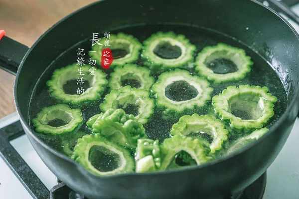 苦瓜加鹽是防止營養流失,加油焯水是防止苦瓜發黃,保持苦瓜成菜後的光澤。
