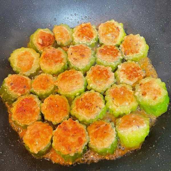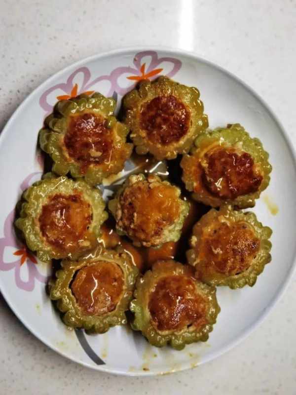 和的肉餡有點稀掛不住苦瓜建議再多焯下水