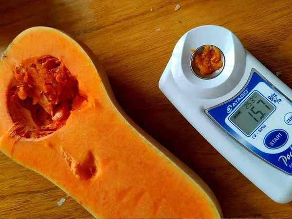 忌廉南瓜的甜也是經過儀器檢測認證過的適中的甜!普通南瓜的甜度大概在9度左右,但經過儀器檢測後的忌廉南瓜的甜度是15.7度。比普通南瓜高了整整6度左右!