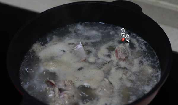 5.大火煮沸後,轉小火蓋上蓋子煲1小時,最後湯煲好的顏色微微蛋黃,表面如果有多餘的油脂,建議用湯勺撇乾淨,去掉為佳,這樣才不會太油膩。