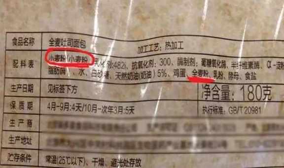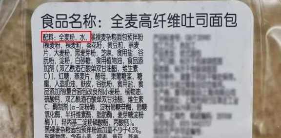 真正的全麥麵包:沒有小麥粉,必須是100%全麥。且配料錶中第一位是全麥粉,其次是水和其它的。