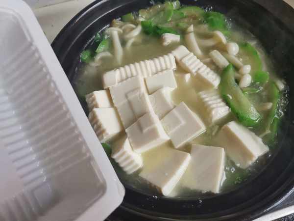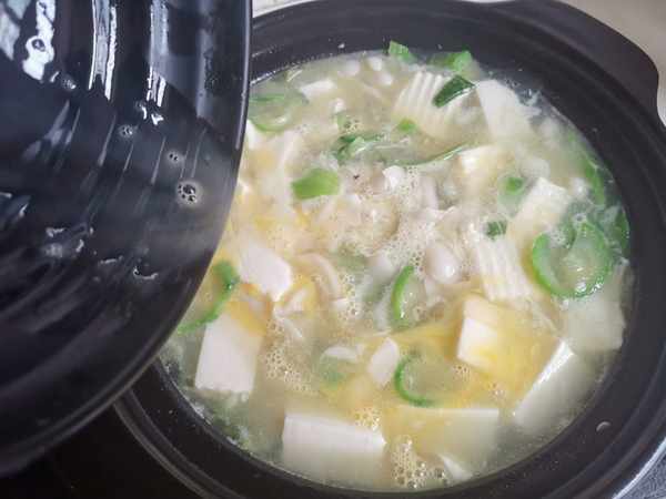 第五步:開鍋後,倒入內酯豆腐繼續小火慢燉2分鐘。