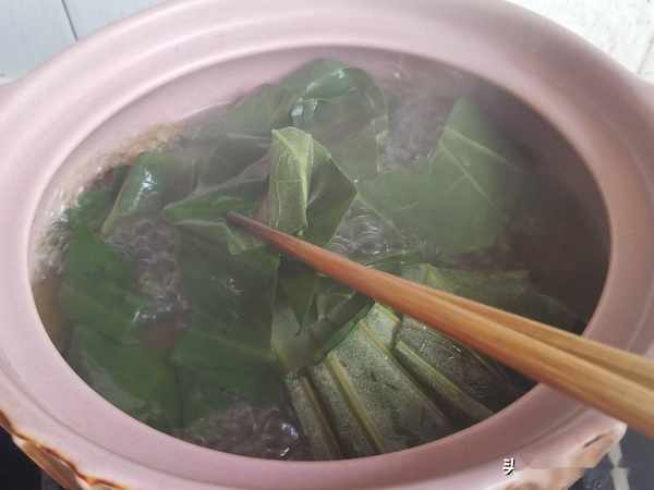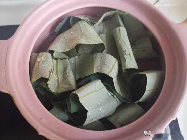 第四步:讓荷葉中的營養成分充分地釋出,然後撈出荷葉。