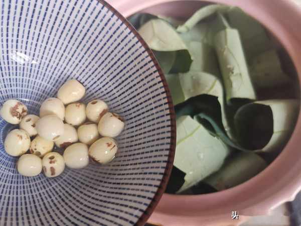 所用資料:小米1勺,蓮葉1片,蓮子適量,冰糖少許(也可以不放)。