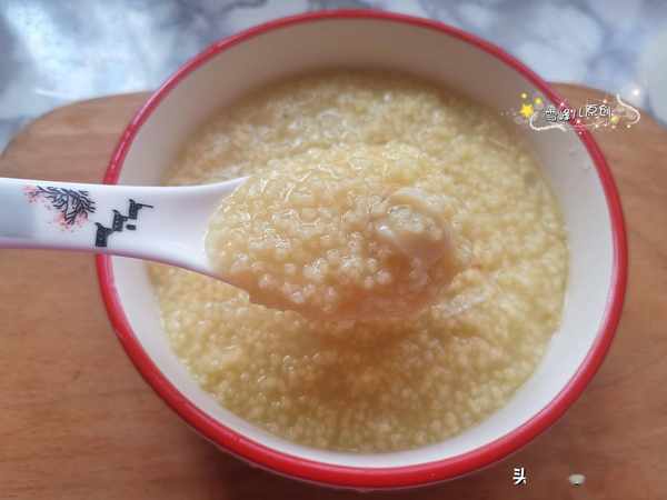 第六步:小火熬煮到小米濃稠,就可以加入適量的冰糖融化,凉到溫熱,就可以上桌了。如果是中老年人吃則不建議放入冰糖。