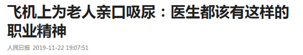 1.《飛機上為老人親口吸尿:醫生都該有這樣的職業精神》.人民日報. 2019-11-22