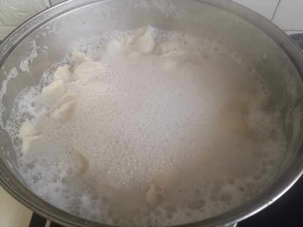 第七步:鍋裏放入清水燒開,煮上餃子,用勺子輕輕推動防止粘鍋,蓋上蓋子煮開,撒點冷水繼續煮一會兒,餃子熟透撈出。