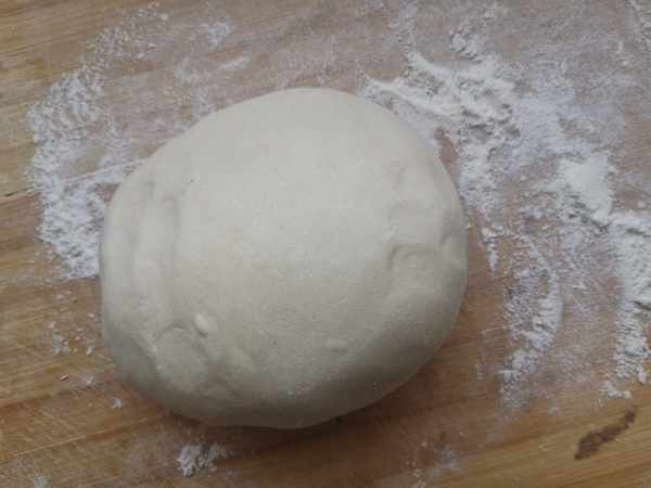 第一步:麵粉加上適量的水,和成軟硬適中的麵團,靜置一會揉勻,這樣可以新增麵粉的柔韌性和筋性,包出的餃子皮薄餡大也不易漏餡。