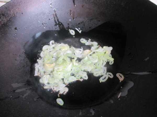 第二步:鍋裏放入花生油,放入蔥花爆炒出香味。
