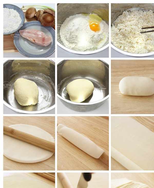 餡兒:雞胸肉1塊、香菇幾個、香葱適量、薑適量。