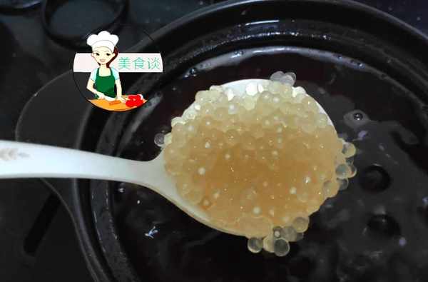 2、煮西米一定要沸水下鍋,大火煮個20分鐘左右,然後關火燜上20分鐘,撈起沖洗乾淨瀝幹水分,這樣煮出來的西米有彈性沒白芯,口感比較好。