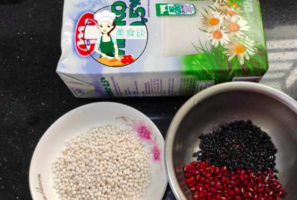準備食材:紅豆適量、黑糯米適量、西米適量、牛奶適量